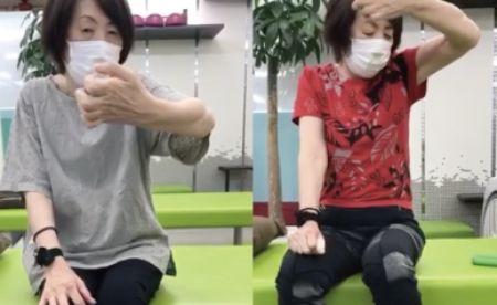 センターでは鍼灸や理学療法やトレーナーによるトレーニングを受けました。鍼灸では硬くなった筋肉を柔らかくしてもらい、胸まで上がっていた手も除々に伸びるようになったんです。すごくうれしかったですし驚きました。